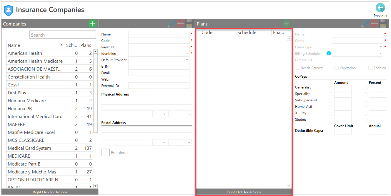 - Clear Copy: Allows you to delete the action, if you have made a copy of the insurance company.
