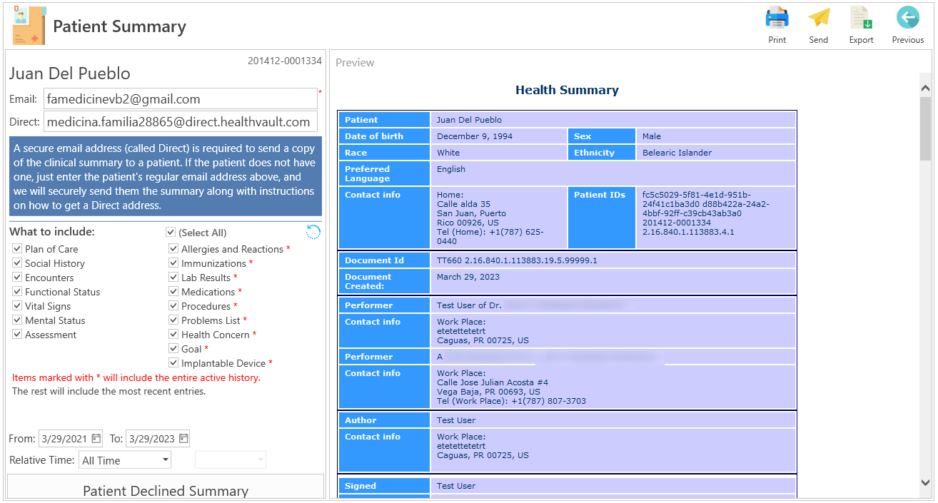 - If the patient does not wish to have the clinical summary sent to their portal, press the button, located on the left side of the screen, called Patient Declined Summary.