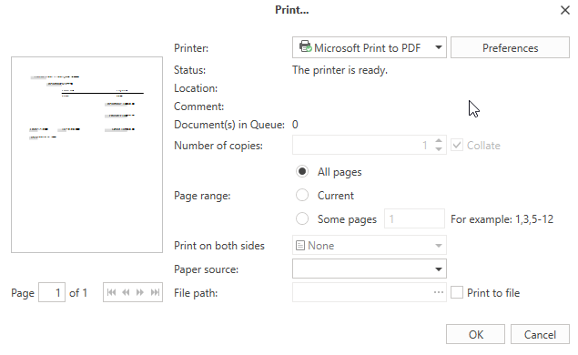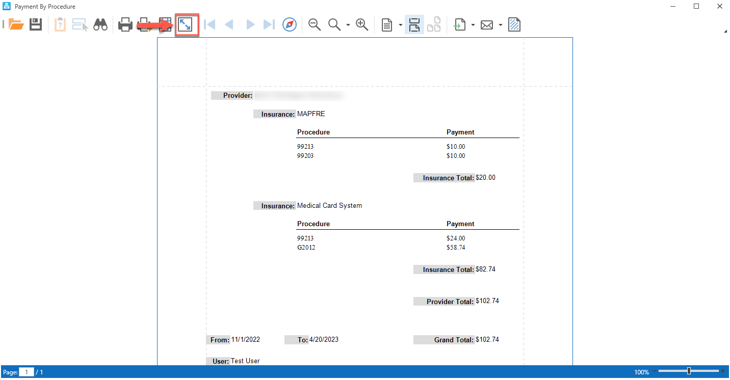 • To select the report configuration and print, press the Print button located at the top of the screen.