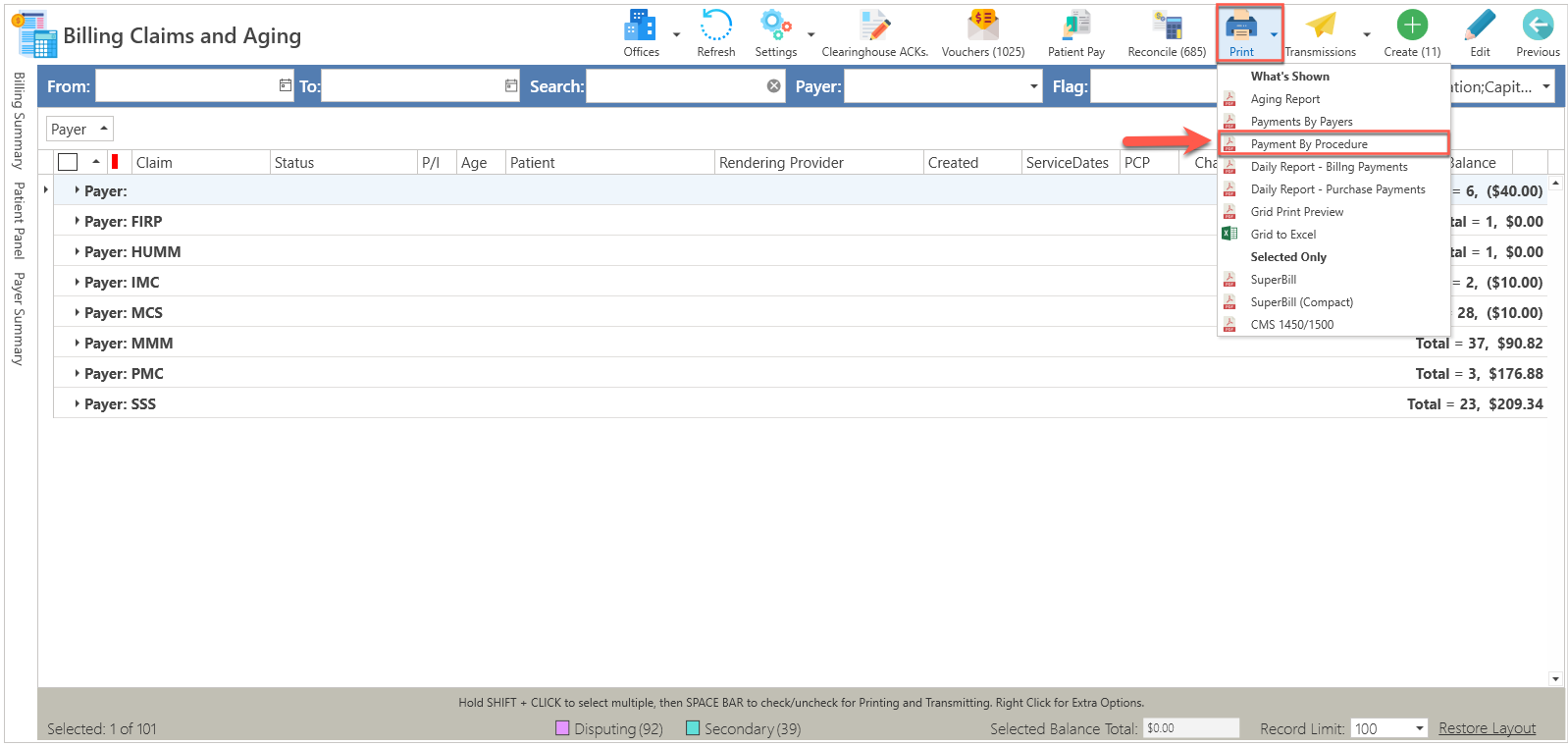 • Select the procedure or, if you wish to view all, select the Select All option and then press the Ok button.