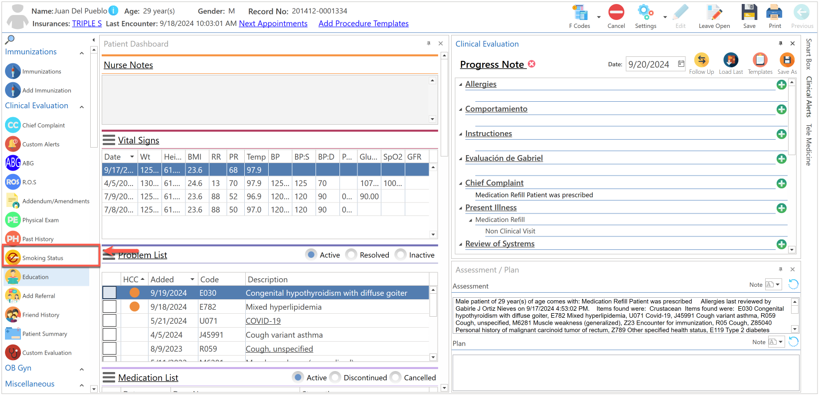 - Click on the Smoking Status button located in the Side Bar section. Or click on the