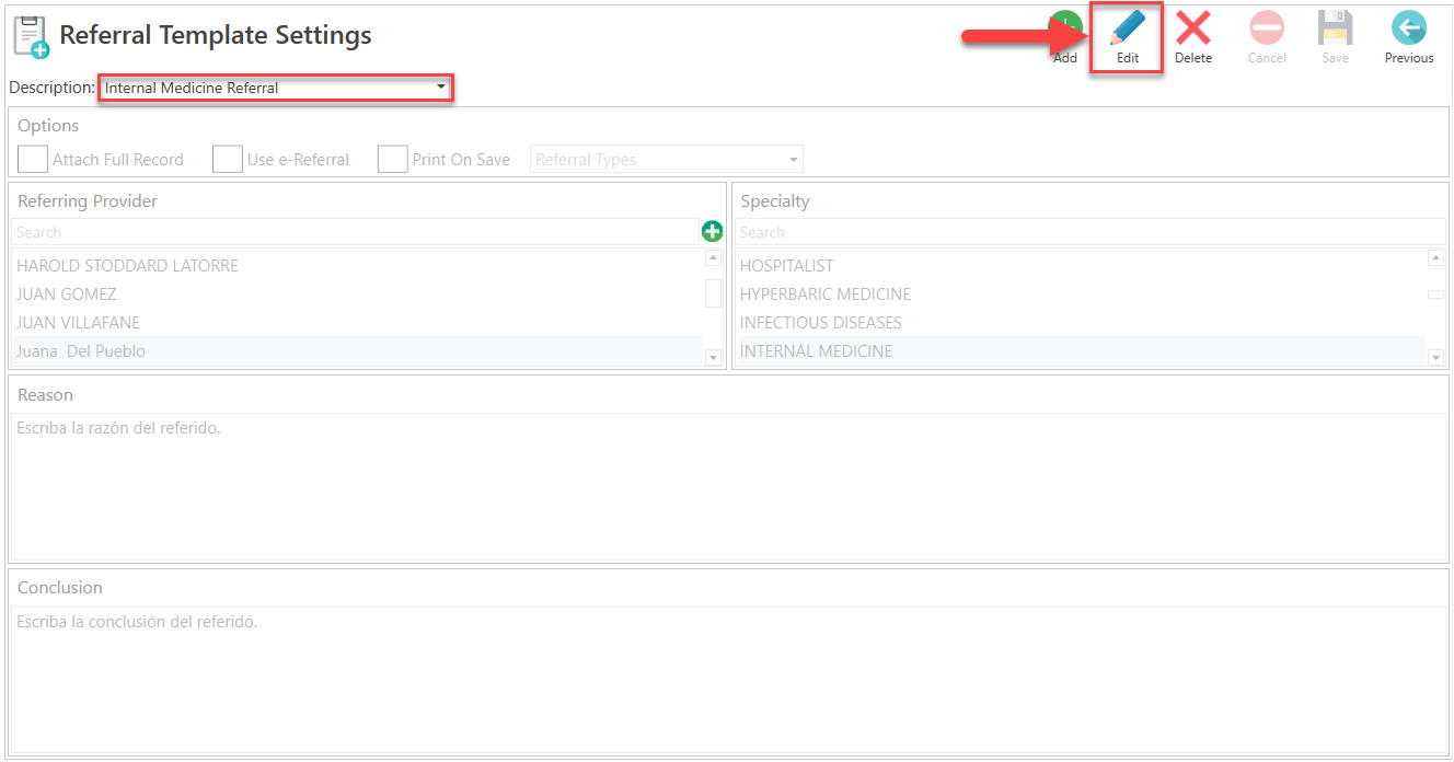 - Select the referral template you wish to edit.