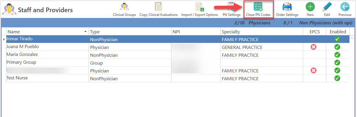 - Learn More About: Settings / General / Staff and Providers / Close PN Codes