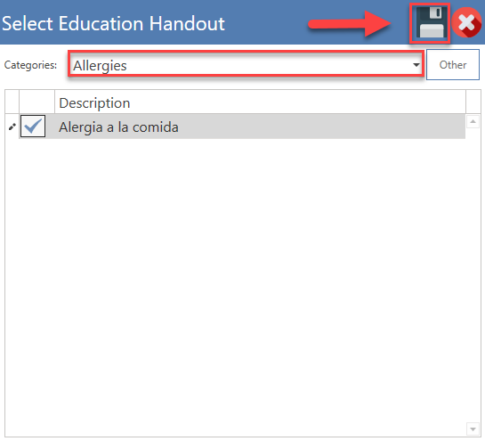 - Select the education information, which you want to add to the selected vaccine. Then press the Save button.