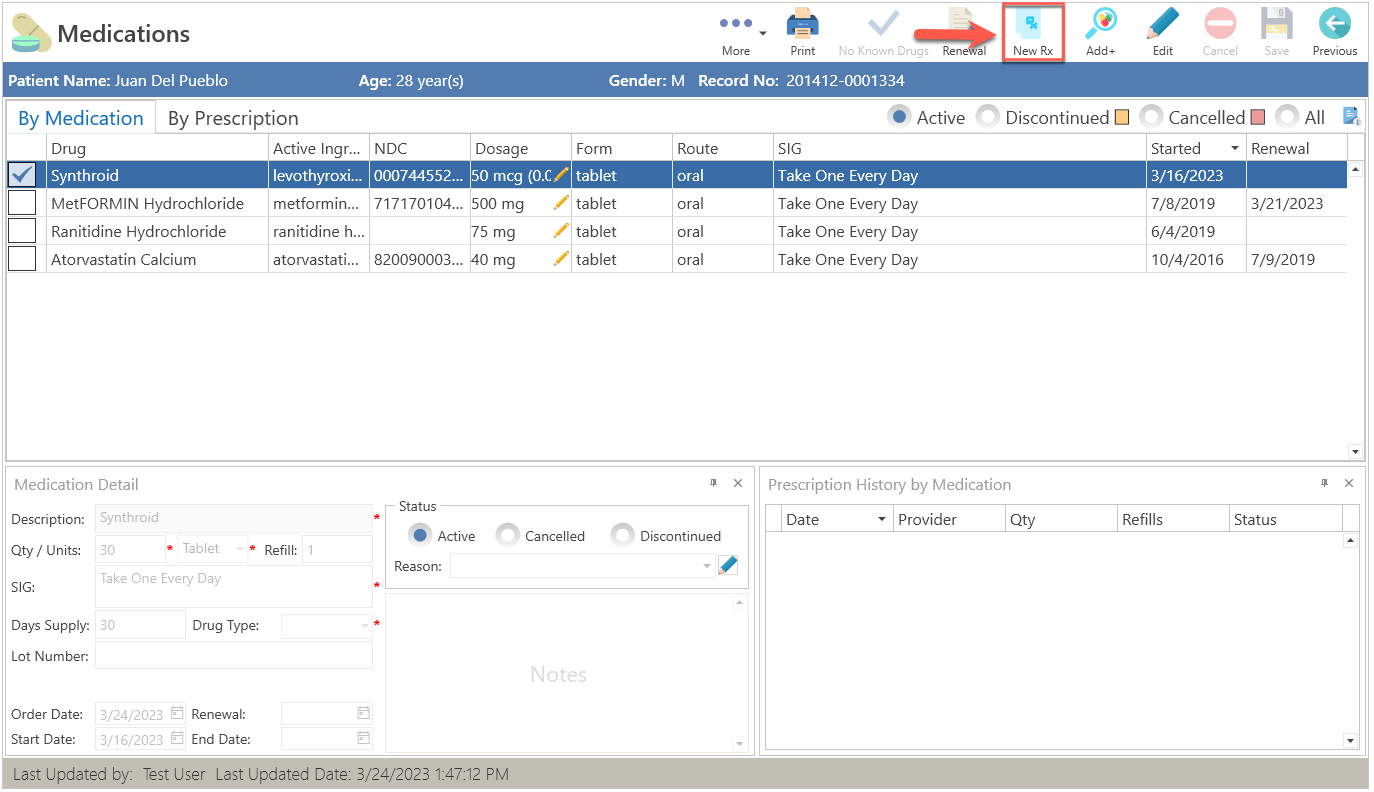 - Press the New Rx button, located at the top of the screen.