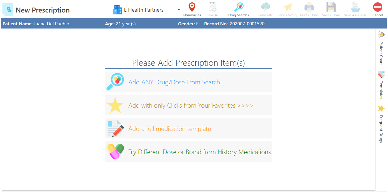 - Automatically, the New Prescription screen will be displayed.