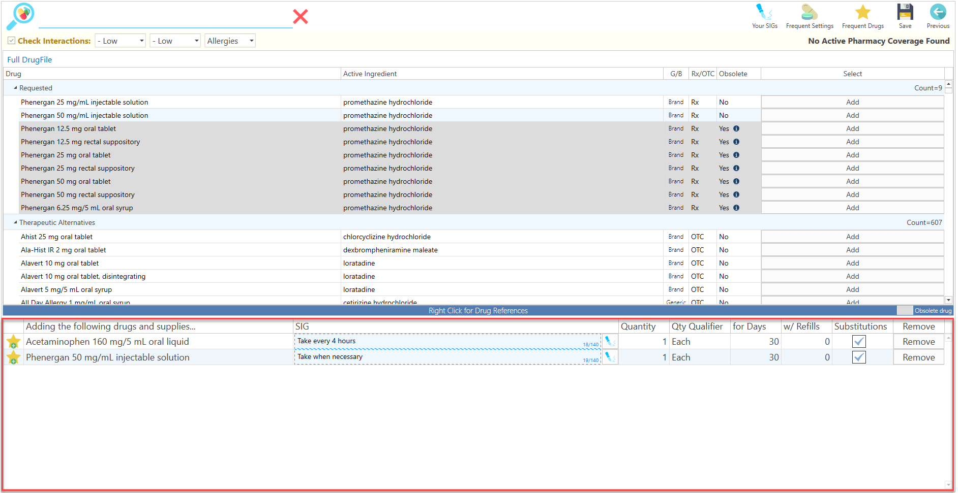 - The drug search screen will be displayed.