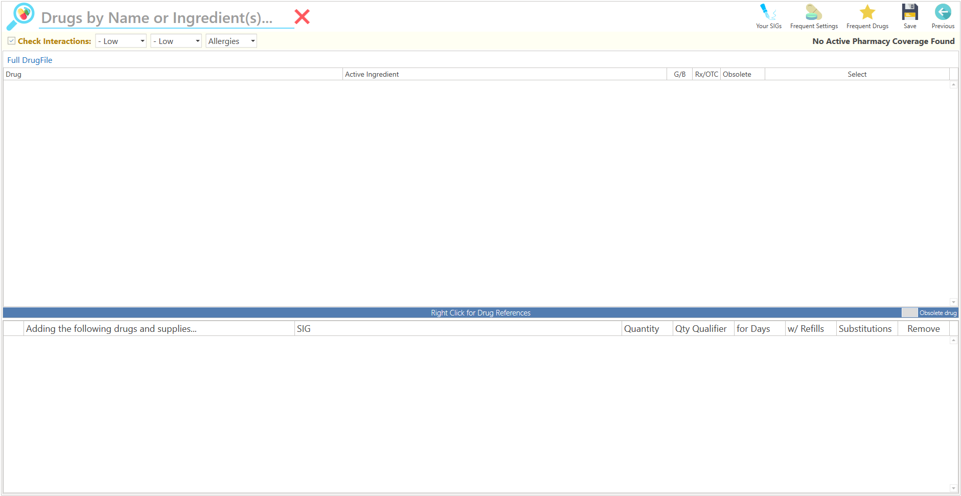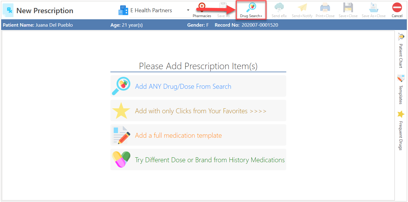 - Press the Drug Search+ button, located at the top of the screen.