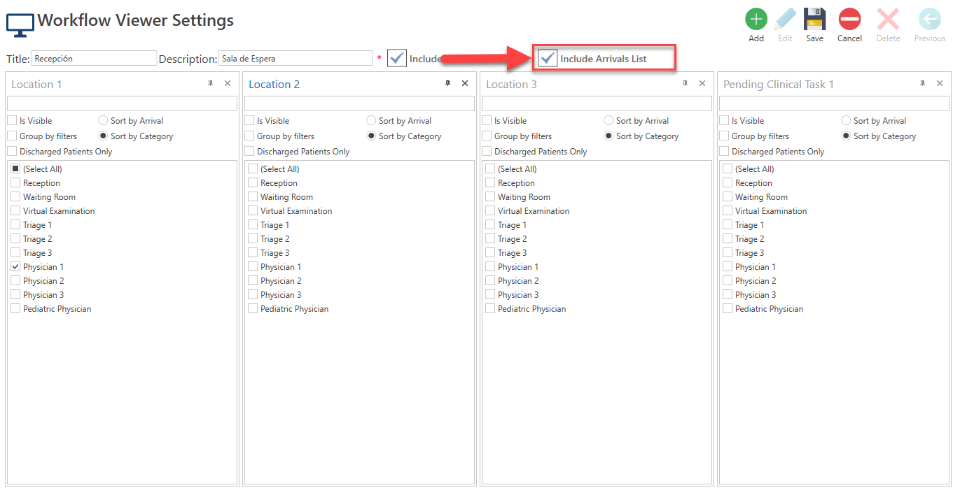- If you wish to include the list column of patients arriving at the center or office, select the Include Arrivals List checkbox.