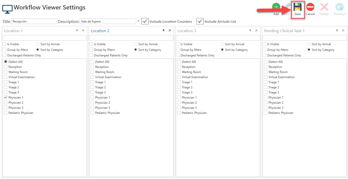- If you wish to include the total number of patients in each evaluation room, select the Include Location Counters checkbox.