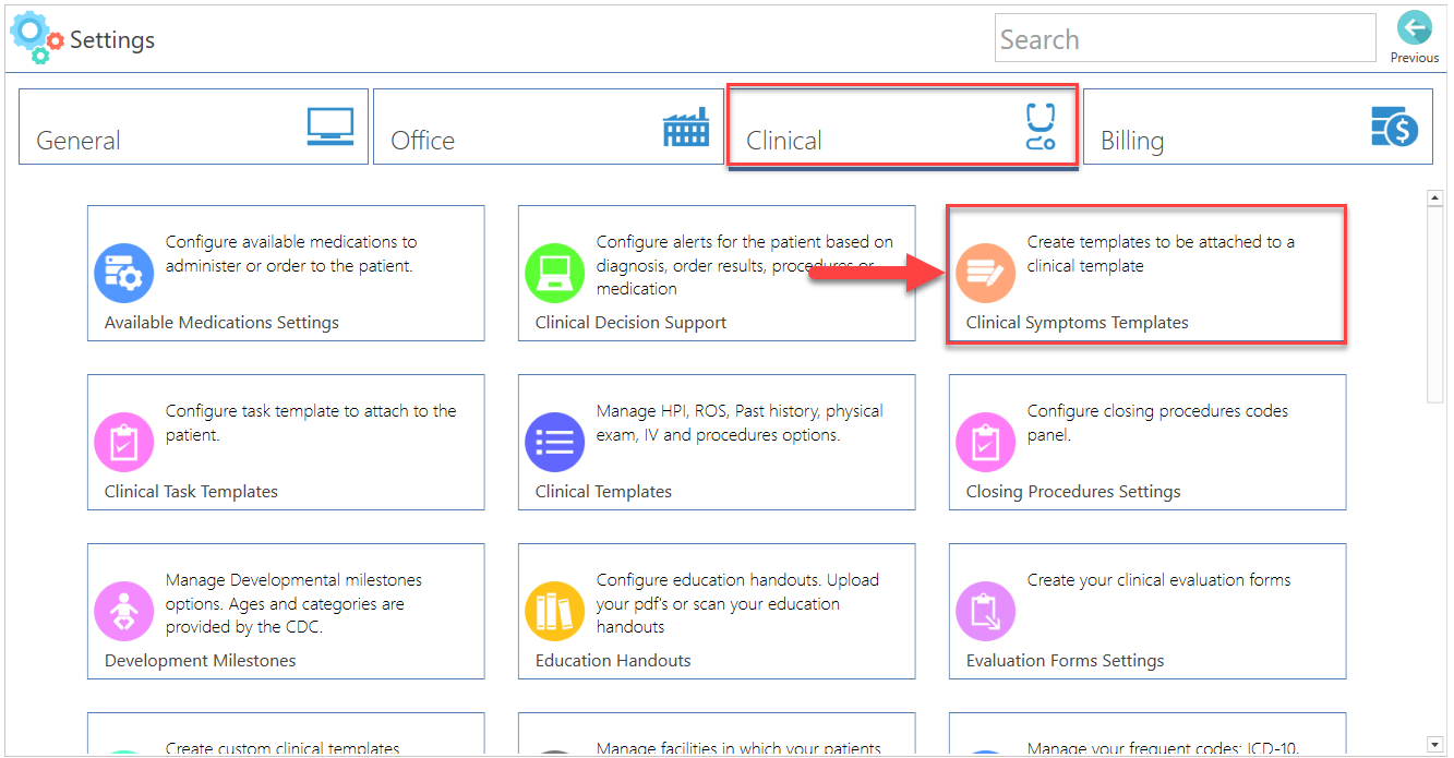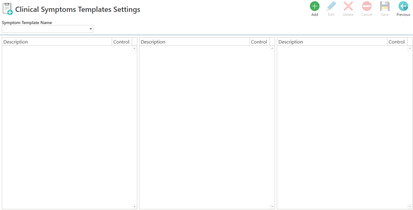 - Learn More About: Settings / Clinical / Clinical Template Symptoms