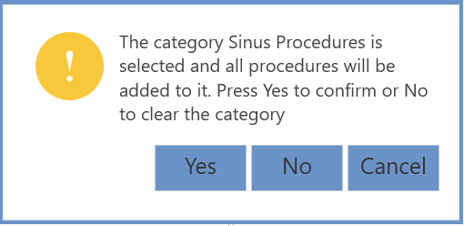 - Press the Yes button to add the procedure to be configured in the selected category.