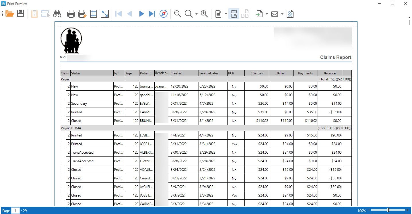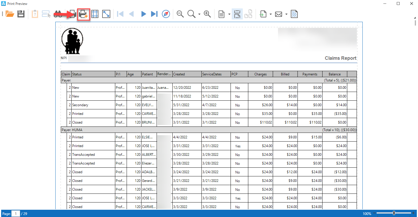 - Learn More About: Billing / Print / Grid Print Preview (Claim Report)
