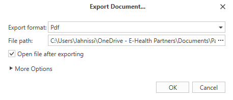 - To export the report according to the format of your choice, click on the arrow next to the Export button.