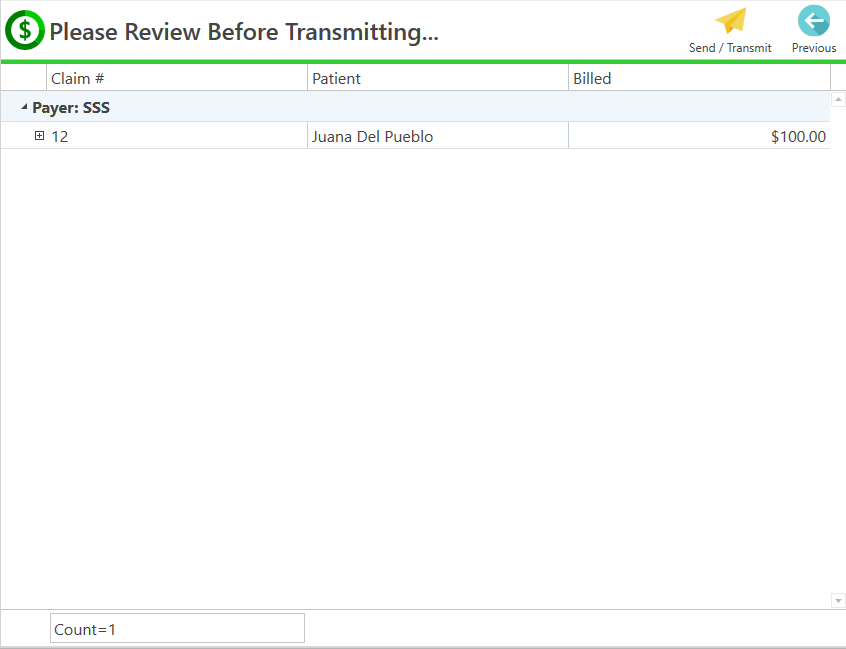 - To re-transmit claims, press the Transmit button located at the top of the screen.
