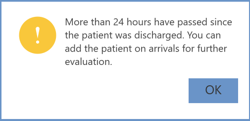 - If more than 24 hours have passed since the patient was discharged, the following message is displayed.