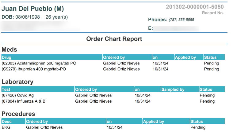 - Print Order Sheet: When pressed, it displays the report of the clinical task orders sent to the selected patient.